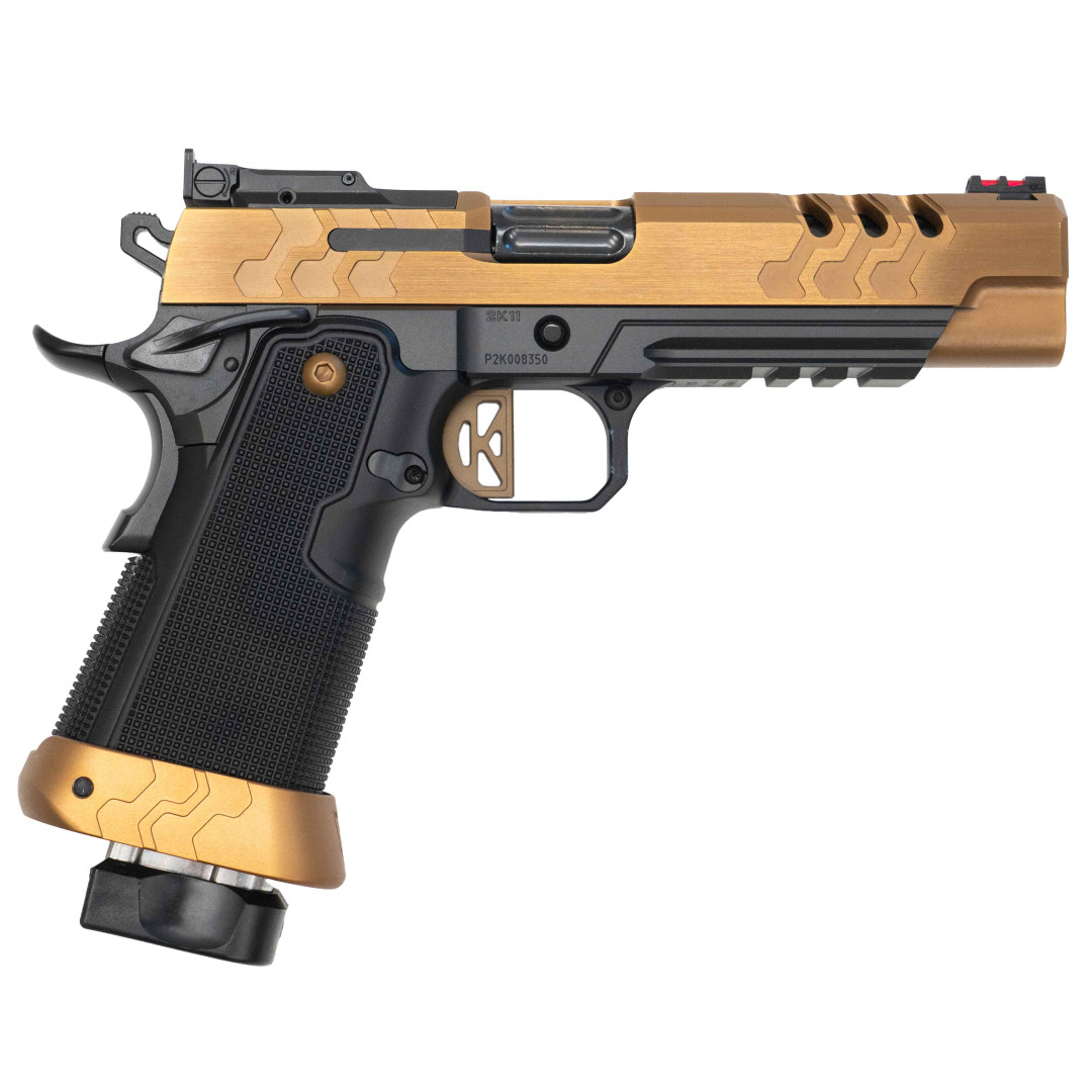 Kimber 2K11 Target OR łączy klasyczną sylwetkę 1911-ki z nowoczesnymi rozwiązaniami dla strzelców sportowych. Dwurzędowy szkielet daje pojemność 17 + 1 lub aż 20 + 1 nabojów 9 mm, a selekcjonowana lufa match-grade „bull” (5″) gwarantuje skupienia godne broni wyczynowej. Wariant Target otrzymuje mikroregulowaną szczerbinę, podczas gdy oznaczenie OR (Optics Ready) oznacza fabryczne frezowanie pod footprint RMR i dołączoną płytkę maskującą. Stalowy sub-frame z powłoką DLC współpracuje z lekkim modułem chwytu z aluminium 7075, co zapewnia wyjątkową sztywność konstrukcji przy akceptowalnej masie. GT Match Trigger łamie się czysto w granicach 1,4–1,8 kg, a opatentowana, beznarzędziowa prowadnica sprężyny powrotnej upraszcza czynności serwisowe. Czteropolowa szyna Picatinny pod lufą pozwala zamontować oświetlenie lub laser, a agresywne nacięcia z przodu i z tyłu zamka gwarantują pewny chwyt podczas przeładowania.