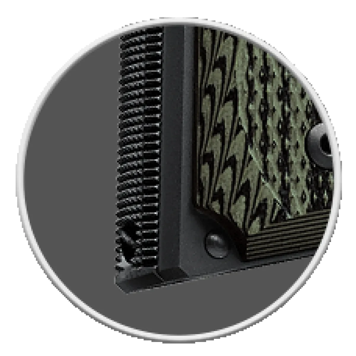 KIMBER CUSTOM TLE/RL II NS; kal.: .45 ACP Kimber Custom TLE/RL II NS to pełnowymiarowa 1911-ka klasy duty-grade, zaprojektowana dla funkcjonariuszy służb mundurowych oraz strzelców cywilnych wymagających nie tylko najwyższej niezawodności i precyzji, lecz także kompatybilności z akcesoriami taktycznymi. Oznaczenie TLE (Tactical Law Enforcement) podkreśla rodowód konstrukcji, RL wskazuje na zintegrowaną szynę Picatinny MIL-STD-1913 pod lufą, a NS (Night Sights) oznacza fabryczne przyrządy tritium 3-Dot świecące w całkowitej ciemności. To gotowa platforma, którą możesz wyposażyć w latarkę/laser, zachowując pełną gotowość 24/7 – od patrolu nocnego po zawody IPSC Classic. Duty-grade wykończenie KimPro II™ Szkielet i zamek wykonano ze stali węglowej obrobionej CNC, a następnie pokryto opatentowaną powłoką KimPro II™ w głębokim macie. Powłoka zwiększa odporność na korozję, zarysowania i refleksy świetlne – kluczowe na służbie oraz w warunkach outdoorowych. 30-liniowe nacięcia (front & rear) ułatwiają pewny chwyt suwadła w rękawicach, a przednia powierzchnia szkieletu z checkeringiem 30 lpi gwarantuje kontrolę nawet podczas długich serii .45 ACP. Lufa match-grade & precyzyjny spust 5-calowa lufa klasy match-grade z klasyczną tuleją (bushing) jest ręcznie dopasowana do prowadnic, zapewniając skupienia 1,5–2″ na 25 yd bez tuningu. Fabryczny spust Single-Action „łamie się jak szkło” przy ok. 4,5 lbs i resetuje się błyskawicznie, co ułatwia dublety w strefie A. Polerowane styki sear-hammer ograniczają tarcie i zużycie, a blok iglicy Series II chroni przed przypadkowym wystrzałem przy upadku broni – bez pogorszenia charakterystyki spustu. Ergonomia pod presją czasu Pełnowymiarowy szkielet Government Size (szer. 1,28″) doskonale wypełnia dłoń. Beavertail z wysokim podcięciem ustawia oś lufy nisko względem nadgarstka, redukując odrzut energicznego naboju .45 ACP. Obustronny, powiększony bezpiecznik kciukowy pracuje z wyraźnym kliknięciem, a fazowane krawędzie („carry melt”) zapobiegają zaczepianiu o oporządzenie. Tritium NS 3-Dot zapewniają szybkie zgranie przyrządów niezależnie od pory dnia. Szyna Picatinny – gotowość taktyczna Integralna szyna MIL-STD-1913 pod lufą umożliwia montaż latarek, podwieszanych laserów lub modułów IR. Zintegrowana z korpusem, nie wymaga przeróbek, a jej pięć slotów pozwala dopasować pozycję akcesorium do preferowanego chwytu i kabury duty OWB. Niezawodność potwierdzona testami Jednosprężynowy zespół powrotny 16 lbs pracuje pewnie z amunicją 230 gr FMJ i +P JHP. Broń przechodzi strzelania testowe 550 rund bez czyszczenia – standard przyjęty przez jednostki SWAT. Polerowana rampa podawcza i dopasowana komora minimalizują ryzyko zacięć również przy pociskach pustogłowych. Dlaczego warto wybrać Kimber Custom TLE/RL II NS? Duty-grade 1911 z szyną i nocnymi przyrządami – gotowa prosto z pudełka. Powłoka KimPro II™: mat, odporność na korozję i zarysowania. Lufa match-grade i spust 4,5 lbs = precyzja konkursowa. Checkering 30 lpi i beavertail – pełna kontrola odrzutu .45 ACP. Kompatybilność z latarkami/laserami poprawia użyteczność w samoobronie i służbie.
