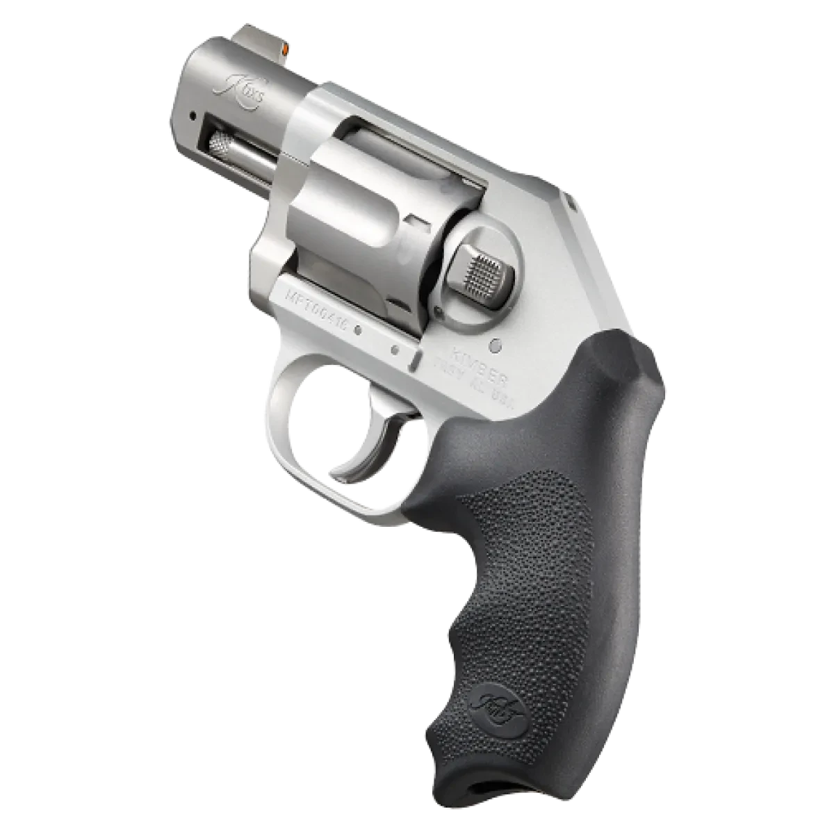 KIMBER K6XS CARRY (kal. .38 Special +P) to najlżejszy sześciostrzałowy rewolwer w ofercie Kimber – stworzony od podstaw z myślą o skrytym noszeniu przez cały dzień. Wersja „XS” oznacza ramę wykonaną z lotniczego aluminium 7075, co obniża masę broni do zaledwie 450 g (15,9 oz) przy zachowaniu pełnej wytrzymałości na nabój .38 Spl +P. Korpus poddano obróbce Carry Melt™, dzięki czemu wszystkie krawędzie są subtelnie zaoblone – rewolwer nie zaczepia o garderobę ani wyściółkę kabury appendix IWB. Bęben o rekordowo małej średnicy 1,39″ / 35 mm mieści sześć nabojów, dając przewagę liczby strzałów bez poszerzania sylwetki w porównaniu z pięciokomorowymi „piątakami”. Wykonany ze stali nierdzewnej pozostaje odporny na wysokie ciśnienia +P, a stożkowe wloty komór przyspieszają doładowanie ręczne lub przy użyciu speedloadera. Za precyzję odpowiada lufa 2″ (51 mm) osadzona w stalowej wkładce, co zapewnia prawidłowe spasowanie z bębnem i powtarzalne wyniki na tarczy. Z przodu znajduje się jaskrawozielona muszka światłowodowa, która błyskawicznie przyciąga wzrok w pełnym słońcu i półmroku. Tylna szczerbina to niskoprofilowy rowek w ramie – nic nie wystaje, nic nie zahacza. Mechanizm DAO oferuje jedwabiście płynny opór około 9,5 lb, równy na całej drodze – kluczowy przy pierwszym, stresowym strzale obronnym. Ukryty kurek eliminuje ryzyko przypadkowego naprężenia i pozwala dobyć broń bez obaw o zaczepienie o ubranie. Wewnętrzna blokada zabezpiecza przed niekontrolowanym wystrzałem w razie upadku. Ergonomię dopełniają okładziny G-10 Gray & Black Boot Grip o agresywnej teksturze 360°; podcięcie under-cut pod językiem spustowym pozwala osadzić dłoń wysoko, redukując odrzut .38 Spl +P. Pomimo ultralekkiej masy, rewolwer zachowuje przyjazny charakter strzału – energia jest rozkładana równomiernie, a szybkie dublety stają się w pełni kontrolowalne.