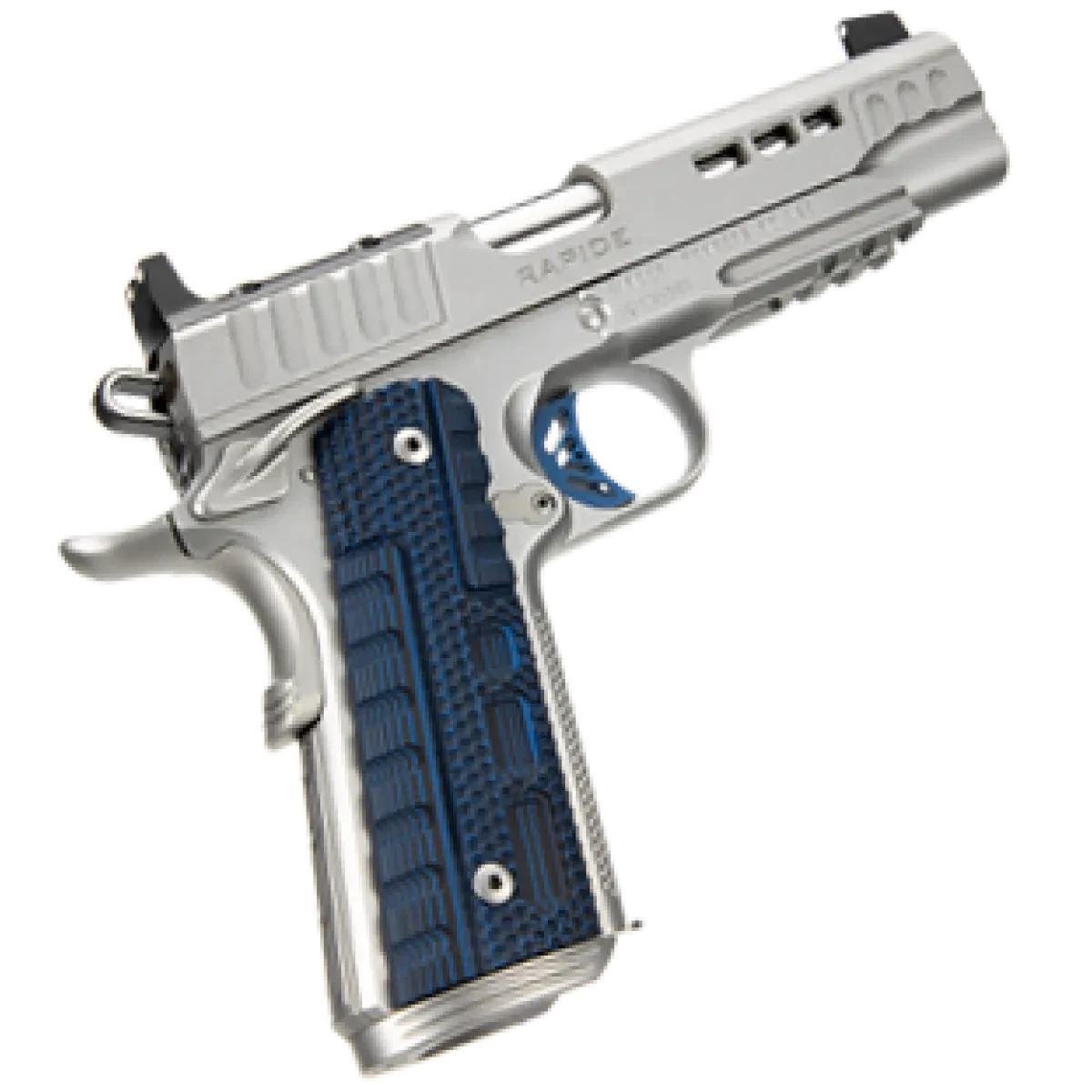| dodatkowe informacje | Okładziny: G‑10, czarno-niebieskie, styl Rapide Ice Ryflowanie frontstrapu: Stiplex Prowadnica sprężyny powrotnej: stalowa, pełnej długości mil-spec |