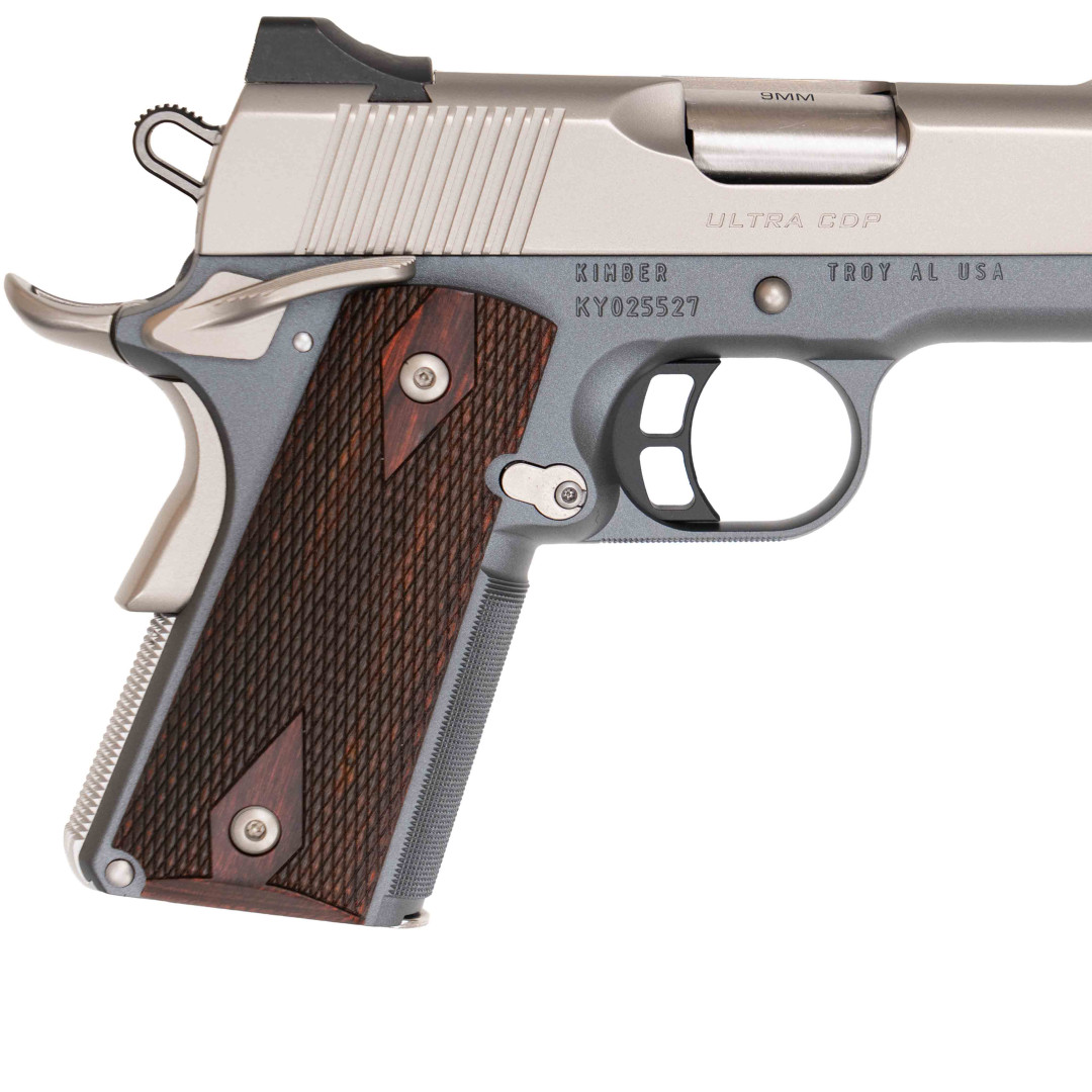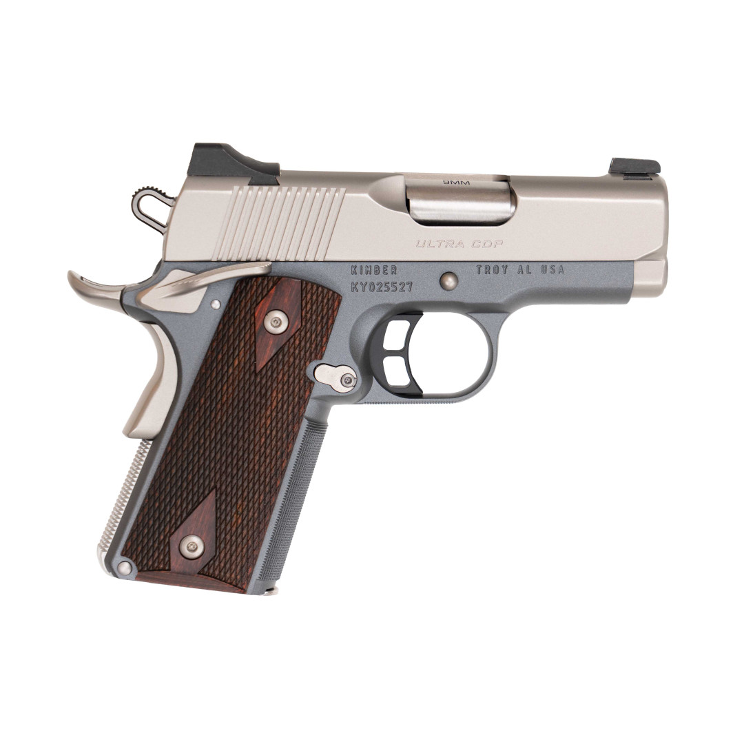 KIMBER Ultra CDP (NS) to subkompaktowa wersja Custom Defense Package—serii broni 1911 ręcznie dopracowywanej w Custom Shopie Kimbera z myślą o użytkownikach EDC, funkcjonariuszach służb i strzelcach defensywnych. Model Ultra wykorzystuje 3-calową lufę match-grade oraz aluminiowy szkielet 7075-T6, dzięki czemu waży zaledwie około 705 g z pustym magazynkiem, zachowując pełną funkcjonalność klasycznego mechanizmu single-action. Komora nabojowa i rampa zintegrowane z lufą zwiększają niezawodność podawania amunicji 9 mm Luger—zarówno FMJ, jak i JHP. Wariant NS wyposażono w niskoprofilowe Tritium Night Sights o trójpunktowym układzie. Ampułki z trytem świecą przez całą dobę, a zaoblone krawędzie nie haczą o garderobę przy szybkim dobyciu z kabury IWB/OWB. Powierzchnie stalowego zamka oraz przednia i tylna część szkieletu poddane zostały procesowi Carry Melt—dokładnemu zaobleniu wszystkich ostrych rantów. Dwutonowe wykończenie (satynowa stal nierdzewna na zamku, matowa czerń KimPro II na szkielecie) nie tylko chroni przed korozją, lecz także redukuje odblaski i podkreśla elegancki charakter serii CDP. Balans rozmiarów i kontroli Konstruktorzy Kimber skrócili lufę i zamek do 3 ″ (76 mm), zachowując przy tym pełnowymiarowy chwyt 1911. Taki układ usprawnia cykl pracy i łagodzi odrzut, który w kalibrze 9 mm jest dodatkowo zredukowany dzięki masie własnej broni i sprężynie powrotnej 18 lb umieszczonej na pełnym pręcie prowadnicy. Radełkowanie 30 LPI na frontstrapie i mainspring housing stabilizuje dłoń, a okładziny z czerwonego drewna różanego w klasycznym wzorze Double Diamond zapewniają pewny chwyt bez nadmiernego powiększania grubości rękojeści. Ergonomia i bezpieczeństwo Obustronny bezpiecznik skrzydełkowy pozwala na intuicyjne rozbrojenie broni niezależnie od wiodącej ręki. Powiększony beavertail z wyraźnym „bumpem” prowadzi dłoń wysoko pod linię lufy, eliminując hammer bite i przyspieszając powrót muszki na cel. Szkieletowy kurek skraca czas inicjacji strzału, a aluminiowy spust match-grade pracuje płynnie z oporem ok. 1,9 kg i krótkim resetem. Lejek gniazda magazynka ułatwia błyskawiczne, pewne przeładowanie w warunkach stresu. Skryte przenoszenie i niezawodność Brak szyny akcesoryjnej pod lufą pozwala zachować smukły profil pistoletu, co w połączeniu z procesem Carry Melt czyni Ultra CDP jednym z najwygodniejszych do skrytego noszenia modeli 1911 w kalibrze 9 mm. Subkompaktowe gabaryty ułatwiają noszenie w pozycji appendix czy na czwartej godzinie, a lekki, wytrzymały szkielet nie obciąża pasa nawet przy całodziennym użytkowaniu."