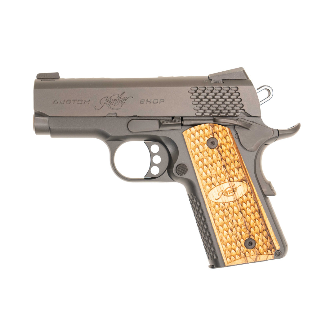 KIMBER ULTRA RAPTOR II NS; kal.: .45 ACP Kimber Ultra Raptor II NS to kompaktowa 1911-ka z Custom Shopu Kimber, stworzona dla strzelców, którzy chcą dyskretnie nosić pełną moc naboju .45 ACP, zachowując przy tym wyjątkową stylistykę i nieskazitelną precyzję. Charakterystyczne frezowania w kształcie łusek – fish-scale serrations – zdobią zamek, górną płaszczyznę i front-strap, nadając broni wyrazisty „raptorski” look i jednocześnie zwiększając przyczepność podczas szybkich manipulacji. Wariant Ultra łączy stalowy, głęboko oksydowany zamek KimPro II™ z lekkim szkieletem z anodyzowanego aluminium 7075-T6 w satynowym macie, co zapewnia idealny balans między wytrzymałością a niską masą do całodziennego EDC. Night Sights – pewność celu 24/7 Dopisek NS oznacza fabryczne przyrządy Tritium 3-Dot Tactical Wedge. Fiolki trytu świecą nieprzerwanie ponad dziesięć lat, pozwalając błyskawicznie zgrać muszkę i szczerbinkę w ostrym słońcu, zmroku parkingu czy w całkowitej ciemności korytarza. Niski, klinowy profil celowników eliminuje ryzyko zaczepienia o odzież, a jednocześnie umożliwia awaryjne przeładowanie o krawędź kabury lub pas. 3-calowa precyzja match-grade Sercem Ultra Raptor II jest 3″ lufa bull barrel klasy match-grade z nierdzewnej stali 400-series. Stożkowy kapturek (bushing-less) usztywnia zamek na całym cyklu pracy, gwarantując fabryczne skupienia 1,5–2″ na dystansie 25 yd bez dodatkowego tuningu. Jednosprężynowy układ powrotny 18 lbs został zoptymalizowany pod energiczny nabój .45 ACP, dzięki czemu pistolet przeładowuje pewnie zarówno lekkie 185 gr JHP, jak i ciężkie 230 gr FMJ +P. Pełna prowadnica ułatwia panowanie nad rekilem i przyspiesza powrót na cel. Ergonomia instynktownego chwytu Fish-scale checkering 30 lpi na froncie chwytu i kabłąku dosłownie „kleją” broń do dłoni nawet w spoconych rękawicach. Rozszerzony beavertail z głębokim podcięciem obniża oś lufy względem nadgarstka, łagodząc podrzut .45 ACP i skracając czas dubletu. Dwustronny, powiększony bezpiecznik kciukowy pracuje z wyraźnym „klik”, łatwym do wyczucia pod presją czasu. Okładziny z egzotycznego Zebrawoodu, frezowane w motywie Raptor, łączą szlachetny wygląd z agresywną fakturą, która nie ślizga się w deszczu ani upale. Spust, który „łamie szkło” Fabryczny mechanizm Single-Action Premium oferuje krótki pre-travel, krystaliczne przełamanie przy ok. 4,5 lbs (≈ 2 kg) i błyskawiczny reset, dzięki czemu kontrolowane dublety w strefie A stają się intuicyjne po kilku magazynkach treningu. Wewnętrzny blok iglicy Series II chroni przed przypadkowym wystrzałem przy upadku, nie pogarszając charakterystyki spustu. Trwałość i konserwacja Zamek powleczony czarną oksydą KimPro II™ opiera się korozji, zarysowaniom i odbiciom światła, a anodyzowany szkielet wzmacnia aluminium 7075-T6 przeciw ścieraniu od klipsa kabury. Subtelne carry-melt sfazowanie krawędzi zapobiega haczeniu o ubranie, a broń przechodzi test 500 strzałów bez czyszczenia i serię z amunicją +P, zachowując stuprocentową niezawodność. Dlaczego warto wybrać Ultra Raptor II NS .45 ACP? Kompakt + pełna siła – 3″ lufa i 7-nabojowy magazynek w idealnym formacie EDC. Fish-scale styling – unikatowa estetyka, która realnie poprawia chwyt. Night Sights – gotowość bojowa o każdej porze dnia i nocy bez baterii. Match-grade out-of-the-box – lufa i spust klasy premium bez kosztownej customizacji. Wytrzymałe wykończenie KimPro II™ – odporne na pot, wilgoć i intensywny trening.