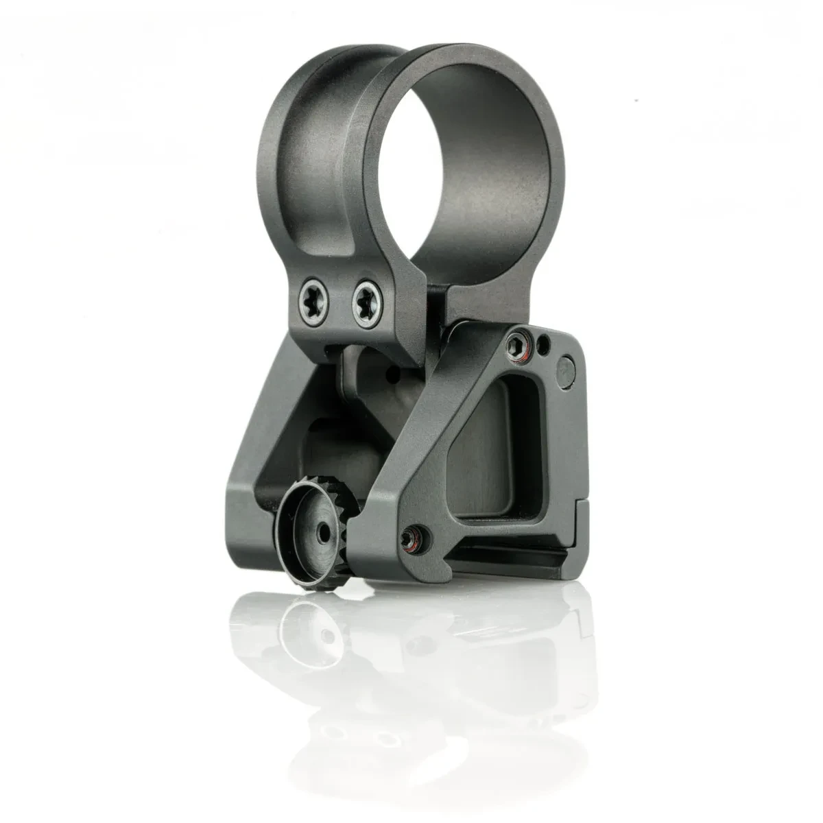 Scalarworks LEAP/06 to zaawansowany montaż boczny typu Flip-to-Side, zaprojektowany specjalnie z myślą o powiększalnikach optycznych o średnicy tubusu 30 mm. Przeznaczony dla najbardziej wymagających użytkowników, łączy w sobie wyjątkową wytrzymałość, ultralekką konstrukcję oraz bezkompromisową precyzję. Montaż wyposażono w opatentowany system szybkiego wypinania ClickDrive™, który zapewnia pełną stabilność i możliwość wielokrotnego demontażu bez utraty nastawy celownika. Model LEAP/06 doskonale współpracuje z powiększalnikami takich producentów jak Aimpoint (3X-C, 3XMag, 3XMag-1, 6XMag-1), Primary Arms (3X, 6X) oraz innymi optykami o tubusie 30 mm. Dzięki modułowej konstrukcji i trzem dostępnym wysokościom, montaż można idealnie dopasować do przyjętej konfiguracji kolimatora i przyrządów celowniczych. Każdy egzemplarz powstaje w USA z wysokogatunkowego aluminium lotniczego 7075-T6 i stali 4140H. Montaż charakteryzuje się kompaktową formą, pozbawioną wystających dźwigni czy pokręteł, co zapobiega przypadkowemu zahaczaniu o odzież lub wyposażenie. Pierścień mocujący Scalarworks został zaprojektowany jako całość – bez klasycznego podziału – co eliminuje punktowe naprężenia i zapewnia równomierne osadzenie powiększalnika. System odchylania bazuje na precyzyjnych detentach działających przeciwnie względem siebie, blokując powiększalnik zarówno w pozycji roboczej, jak i odchylonej. Całość oferuje absolutną powtarzalność i możliwość pracy w każdych warunkach, nawet po setkach cykli.