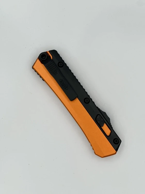 MICROTECH GLYKON TE BLACK STANDARD ORANGE 185-1OR To nowoczesny nóż automatyczny OTF (Out-The-Front), który wyznacza nowe standardy funkcjonalności i ergonomii. Stworzony z myślą o profesjonalnych użytkownikach i entuzjastach EDC, model ten wyróżnia się zaawansowaną konstrukcją, solidną budową i charakterystycznym wyglądem z akcentem w kolorze pomarańczowym. Głownia typu bayonet (bagnetowa) o długości 3,75 cala (ok. 9,5 cm) łączy zalety geometrii sztyletowej z wysoką stabilnością podczas pracy. Wykonana z wysokiej jakości stali premium (najczęściej M390), zapewnia doskonałą odporność na zużycie i wyjątkową ostrość przez długi czas. Glykon posiada powiększoną, frezowaną rękojeść z aluminium lotniczego, która nie tylko zapewnia pewny chwyt, ale również zwiększa komfort użytkowania w rękawicach. Suwak aktywujący ostrze to nowość w ofercie Microtech tri-sided button, czyli trójstronny suwak, pozwalający na obsługę z dowolnej strony noża – prawą lub lewą dłonią. Odwracalny klips tip-down umożliwia wygodne i dyskretne noszenie noża niezależnie od preferencji użytkownika. To w pełni funkcjonalny i nowoczesny nóż OTF do codziennego użytku, który nie idzie na kompromisy.