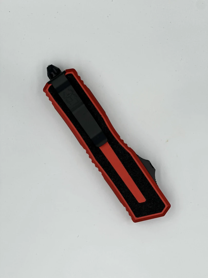 MICROTECH SCARAB II GEN III DE BLACK FULL SERRATE RED 1280-3RD Nowa generacja legendarnego noża OTF (Out-The-Front), stworzonego z myślą o najwyższej funkcjonalności, trwałości i natychmiastowej reakcji w każdych warunkach. W wersji z podwójnym, w pełni ząbkowanym ostrzem oraz rękojeścią w kolorze czerwonym, model 1280-3 RD wyróżnia się taktycznym charakterem i niepowtarzalnym stylem. Ostrze typu Double Edge Full Serrated, wykonane z elitarnej stali Böhler M390MK, oferuje doskonałą ostrość, ekstremalną odporność na zużycie i niezawodne cięcie nawet najbardziej włóknistych materiałów. Czarne wykończenie ostrza podkreśla agresywny, profesjonalny charakter noża. Rękojeść wykonana z anodowanego aluminium 6061-T6 w intensywnym czerwonym kolorze zapewnia wytrzymałość i lekkość. Scarab II Gen III to nóż taktyczny klasy premium idealny dla profesjonalistów, operatorów oraz wymagających kolekcjonerów. Zastosowana stal Böhler M390MK, opracowana specjalnie dla Microtech, gwarantuje doskonałe właściwości tnące, ekstremalną odporność na ścieranie oraz długie trzymanie ostrości. Ostrze typu D/E (Double Edge) z częściowym ząbkowaniem świetnie sprawdza się w przecinaniu włóknistych materiałów, a czarne wykończenie dodaje mu dyskretnej agresji. Rękojeść z anodowanego aluminium 6061-T6 jest lekka, ergonomiczna i trwała. Nowe wkładki chwytne z grip tape zapewniają maksymalną kontrolę nawet w trudnych warunkach. Frezowana platforma pod suwakiem znacząco redukuje tarcie i chroni mechanizm przed zabrudzeniami. Nowy napęd OTF w Scarabie II to jeden z najszybszych i najcichszych systemów, jakie Microtech kiedykolwiek stworzył. Mechanizm jest płynny, responsywny i gotowy do działania za każdym razem, gdy tego potrzebujesz.