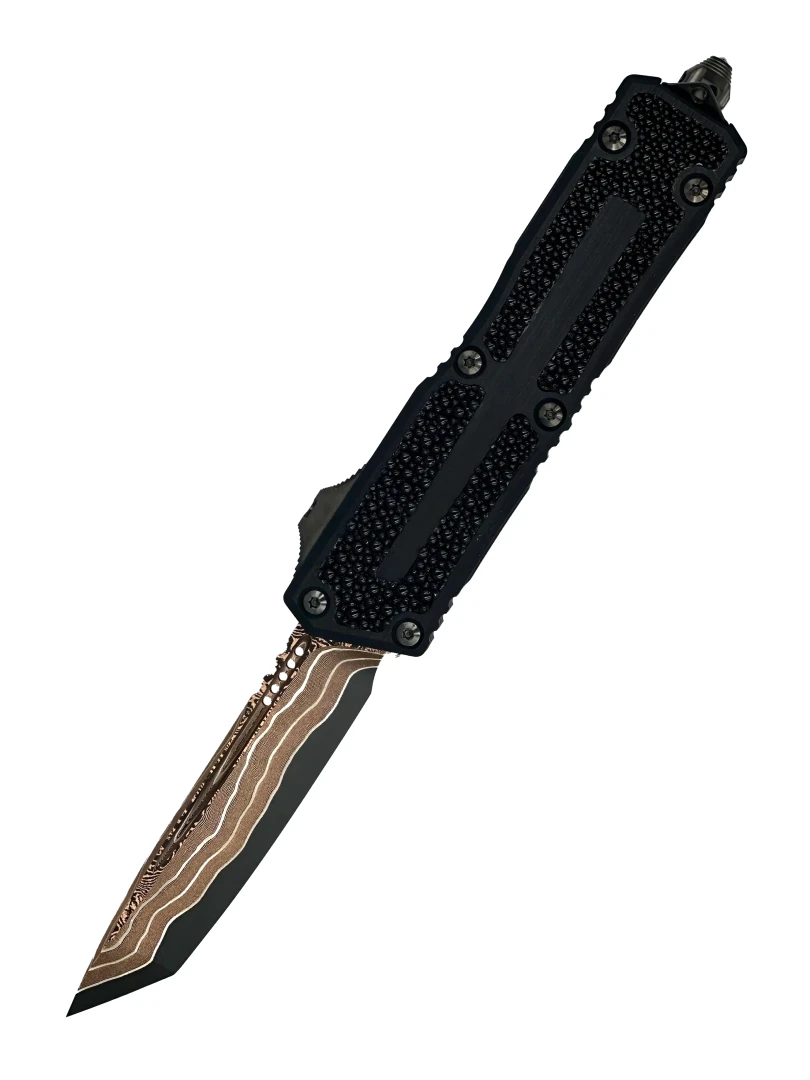 MICROTECH SCARAB II GEN III TANTO EDGE MARFIONE SELECT BAKER FORGE COPPERMAI DAMASCUS HEFTED ALLOY STINGRAY INLAY DLC HARD CUT STAINLESS 1279-16MS2 Nowoczesna interpretacja kultowego modelu OTF, łącząca taktyczną niezawodność z luksusowym wykończeniem. Ostrze wykonane z wysokiej jakości stali damasceńskiej nie tylko zachwyca wizualnie, ale także zapewnia znakomitą ostrość, trwałość i odporność na zużycie. Kształt tanto gwarantuje maksymalną siłę penetracji i precyzję cięcia, co czyni ten nóż doskonałym narzędziem w codziennym użytkowaniu i zastosowaniach bojowych. Nowa generacja Scaraba została wyposażona w ulepszony mechanizm OTF, oferujący silniejszy impuls wysuwu, płynniejsze działanie oraz zwiększoną odporność na zanieczyszczenia dzięki funkcji rear porting. Frezowany przycisk z zabezpieczonym kanałem zapewnia bezpieczne i niezawodne użytkowanie nawet w trudnych warunkach terenowych. Rękojeść z frezowanego aluminium z teksturowanymi wkładkami oferuje pewny chwyt w każdej sytuacji, a nowy układ śrub Torx poprawia sztywność i ułatwia konserwację. Nóż jest w pełni produkowany w USA i objęty dożywotnią gwarancją producenta.