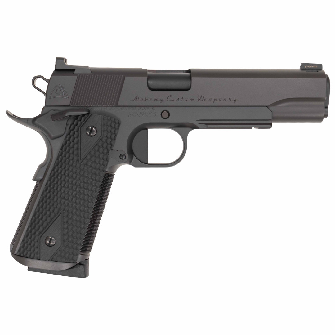 Alchemy Custom Weaponry Quantico 9×19 mm to pistolet klasy premium, zaprojektowany w duchu nowoczesnej interpretacji platformy 1911 z naciskiem na kulturę pracy, spasowanie i ergonomię. Uwagę zwraca jednolite, ciemne wykończenie oraz czyste linie zamka i szkieletu, podkreślające „profesjonalny”, taktyczny charakter modelu.