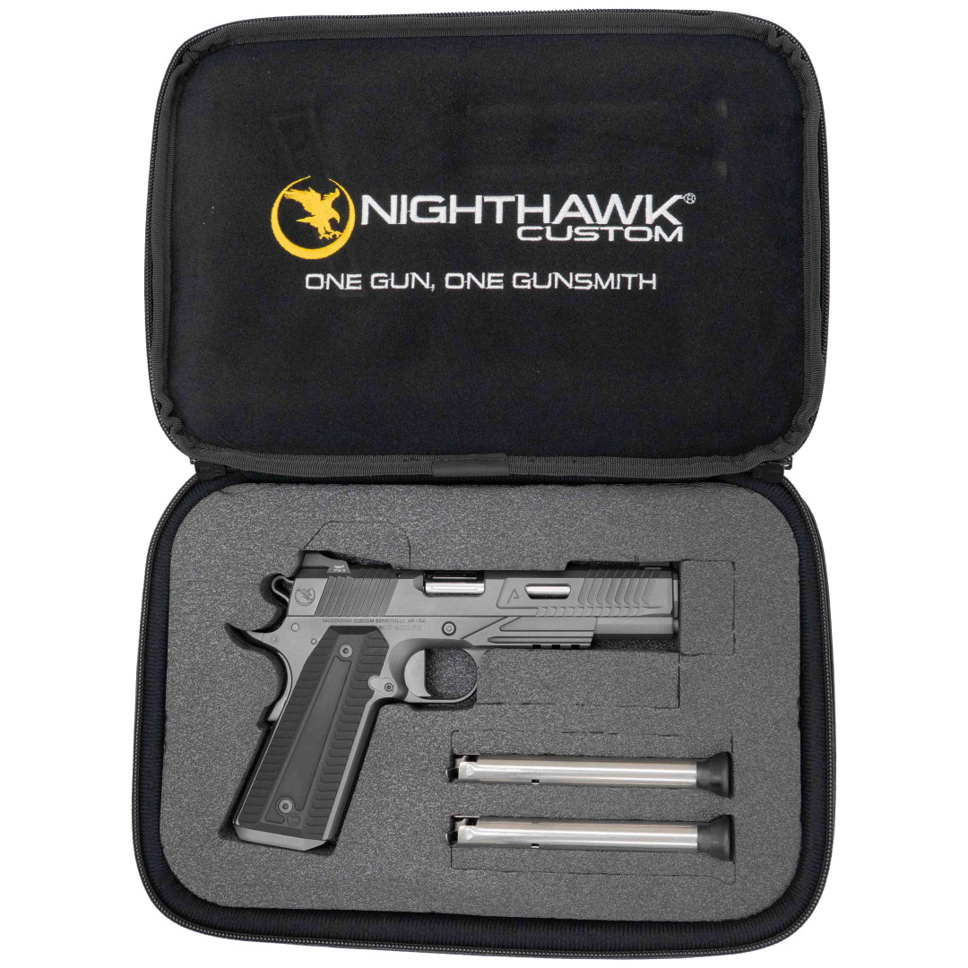 Nighthawk Agent 2 Gov Recon to wysokiej klasy pistolet 1911/2011 w kalibrze 9×19 mm, przystosowany do strzelania z kolimatorem dzięki systemowi Nighthawk IOS (Interchangeable Optic System). W zestawie znajduje się komplet elementów montażowych (płytki/plate), a także przyrządy mechaniczne (iron sights) w układzie forward. Model ma SlantPro two dot rear, wzmocnioną muszkę tritium i sportowo-bojowy charakter w wykończeniu „Recon”.