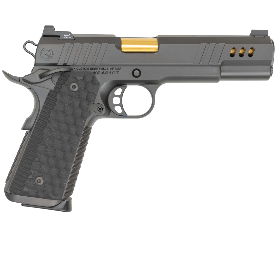 Nighthawk Custom President Gov z prestiżowej linii Boardroom Series to ręcznie składany pistolet na platformie 1911 Government, stworzony z myślą o maksymalnej kulturze pracy i szybkim cyklu podczas strzelania dynamicznego. Charakterystyczne okna i odciążenia zamka redukują masę części ruchomych, przyspieszając pracę broni i jednocześnie eksponując efektowną złotą lufę Gold Titanium Nitride (TiN).