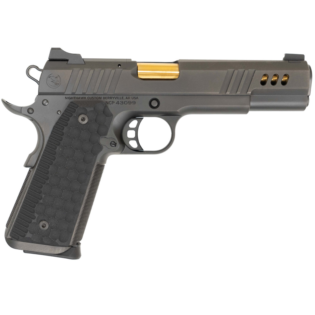Każdy egzemplarz jest składany przez jednego rusznikarza Nighthawk Custom, co gwarantuje perfekcyjne spasowanie elementów, płynną pracę zamka oraz wyjątkową kulturę działania. Stalowa konstrukcja Government zapewnia stabilność strzału, długą linię celowania i przewidywalną charakterystykę odrzutu.