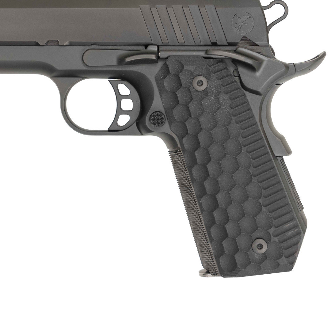 W tej konfiguracji otrzymujesz upgrade do Bull Barrel (Nighthawk Match) wraz z zestawem Guide Rod & Bow-Tie Plug, co wzmacnia przednią część układu i podkreśla „sportowo-precyzyjny” charakter wersji Commander.
