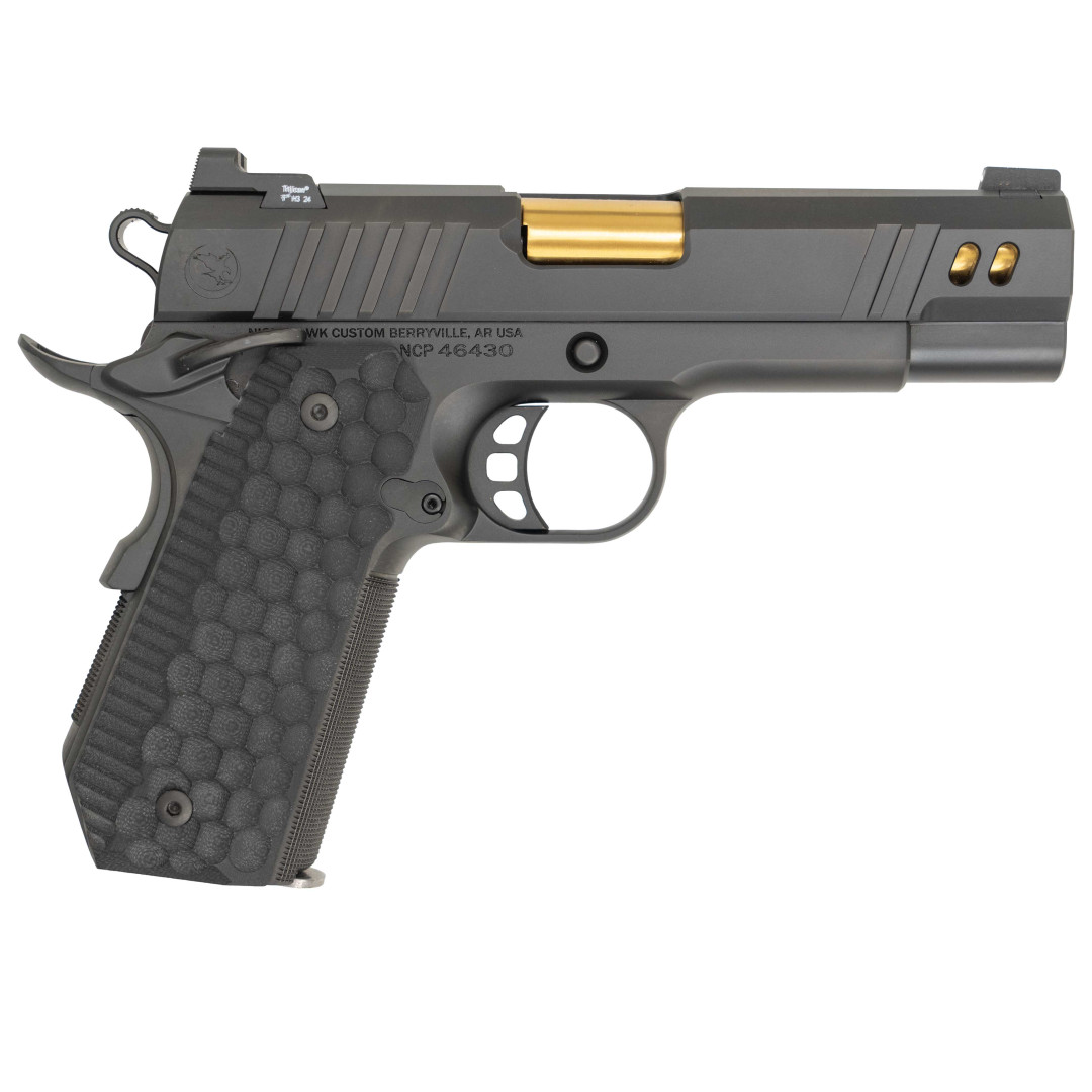 Nighthawk Custom Vice President Comm z serii Boardroom to ręcznie składany pistolet klasy premium na platformie 1911 Commander, zaprojektowany jako połączenie eleganckiej stylistyki z bardzo szybką pracą zamka. Charakterystyczne okna w zamku i agresywne odciążenia skracają cykl pracy i odsłaniają złotą lufę Gold Titanium Nitride, tworząc rozpoznawalny wygląd serii.
