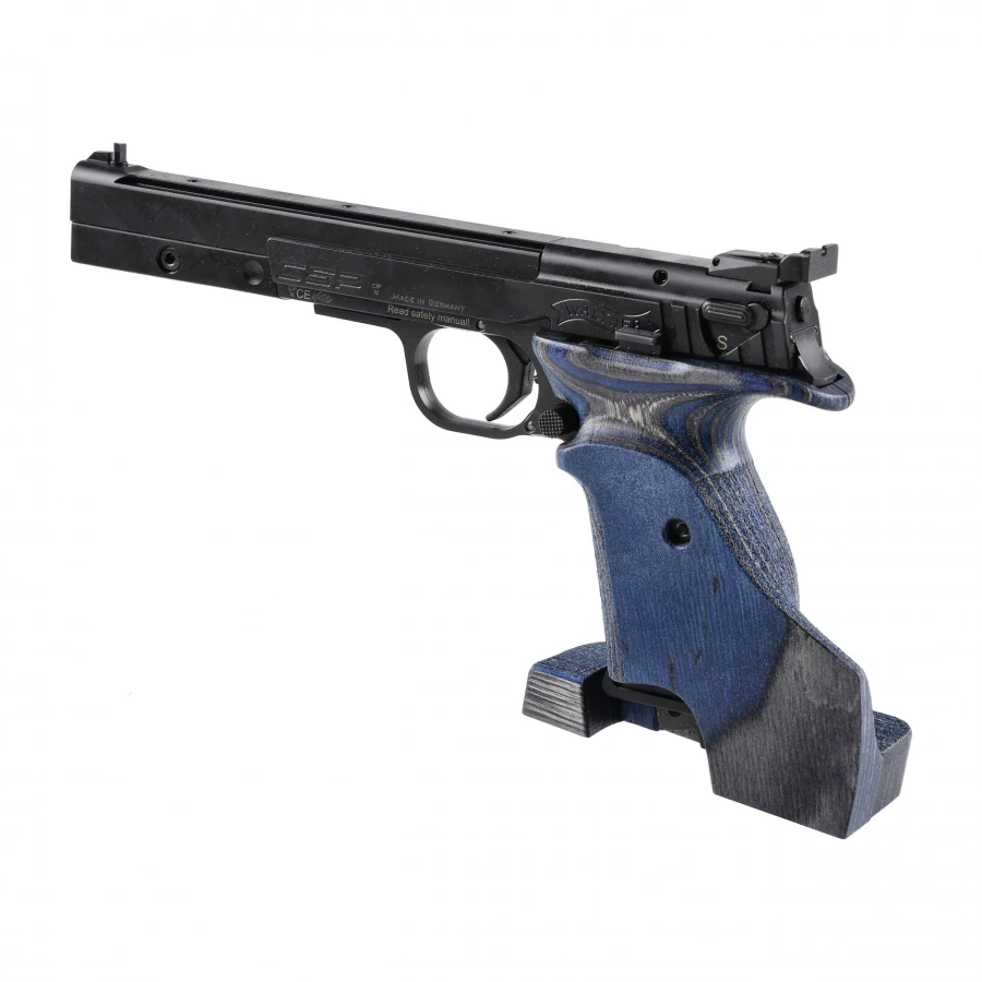 Walther CSP Expert SH (.22 LR, art. 2875331) to konkurencyjny pistolet bocznego zapłonu z serii CSP (Classic.Sports.Pistol.) zaprojektowany z myślą o zawodnikach oraz strzelcach treningowych oczekujących maksymalnej precyzji i ergonomii. Model Expert SH łączy stalowy, hartowany szkielet (obróbka Tenifer®) ze sportowym chwytaniem — w standardzie montowany jest anatomiczny grip „Blue Angel” z laminowanego drewna (Competition Grip), co poprawia powtarzalność ustawienia dłoni i komfort przy wielu seriach strzeleckich. Technicznie pistolet posiada 150-mm lufę, stalowy zamek i regulowany, matchowy spust (regulacja siły i położenia), a opór spustu w specyfikacji producenta mieści się w zakresie 1000–1360 g — typowe dla konkurencyjnych konfiguracji kalibru .22 LR. Przyrządy celownicze to klikowo regulowana szczerbina oraz obracalne korniki frontowe, pozwalające szybko dopasować prowadzenie do różnych dystansów i warunków. Z pudełka CSP Expert dostarczany jest zwykle z dwoma 10-nabojowymi magazynkami. CSP Expert oferuje także praktyczne opcje montażowe: fabrycznie przewidziano miejsce na front weight (100 g — dołożony, z opcją osłony syntetycznej) oraz 11-mm accessory rail i otwory montażowe umożliwiające instalację szyny Picatinny / adapterów pod akcesoria lub płytki montażowe (opcjonalne) — co daje elastyczność: od klasycznego strzelania tarczowego po konfiguracje z dodatkowymi akcesoriami. Wymiary całkowite pistoletu to 245 × 145 × 50 mm, a masa około 950 g, co daje stabilną platformę o niskim cofnięciu i bardzo komfortowej kontroli podczas treningów. Dla kogo: CSP Expert SH to sprzęt dla zawodników koncentrujących się na konkurencjach sportowych i treningu precyzyjnym (.22 LR), ale też dla trenerów i klubów, które potrzebują trwałej, łatwe konfigurowalnej broni z ergonomią konkurencyjną z pudełka.