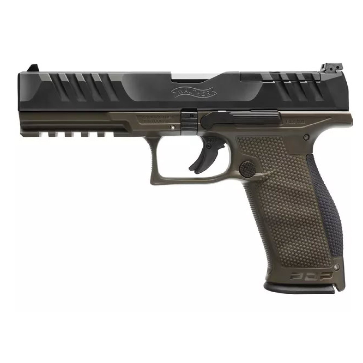 PISTOLET WALTHER PDP FS 5.0" 18R KAL. 9X19MM OR OD GREEN PO PANTONE 7763U INT