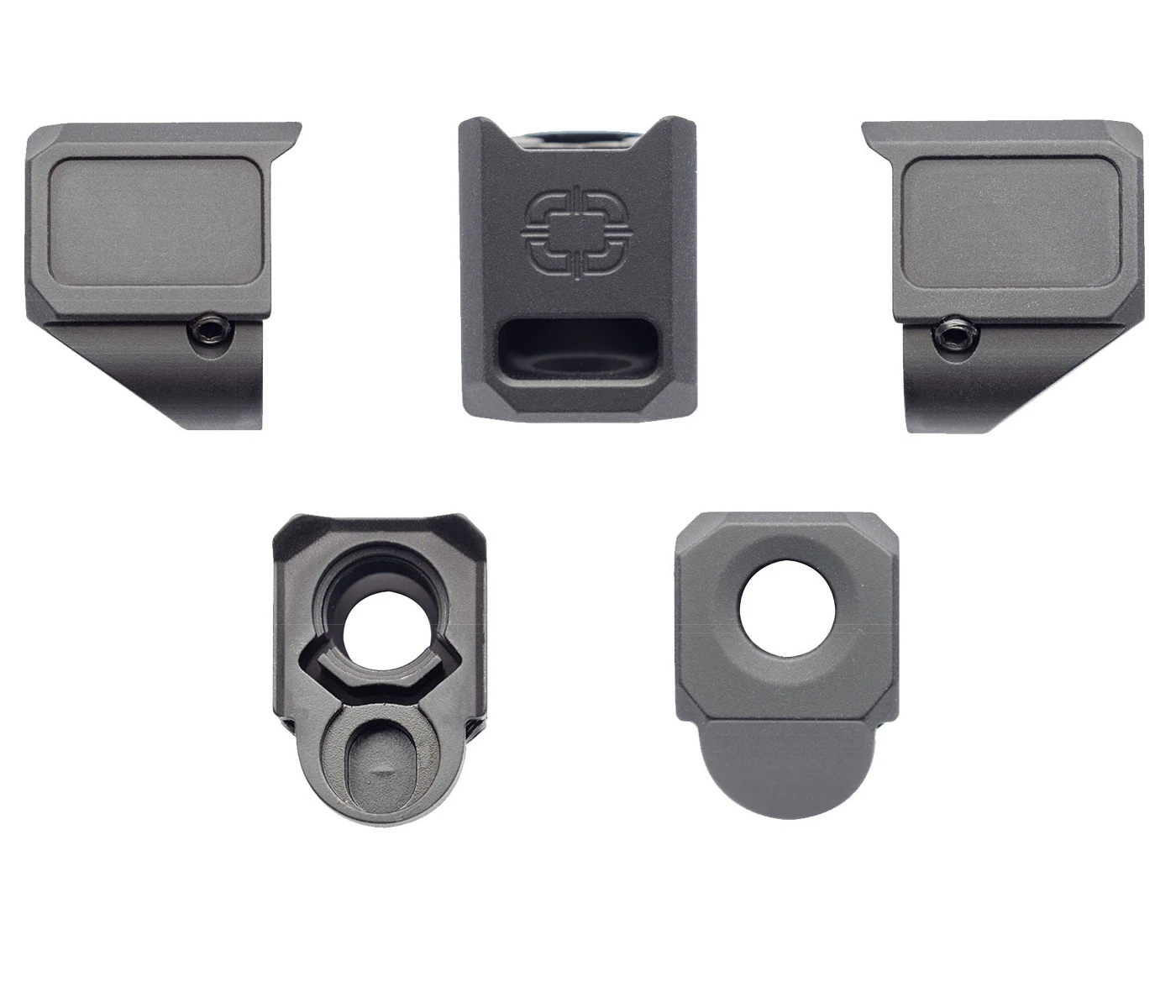 - system montażu/demontażu: Kompensator nakręca się na 1/2-28 gwint, a następnie blokuje/ściąga za pomocą śrubek zaciskowych; system ma na celu zabezpieczenie gwintu lufy przed uszkodzeniem.