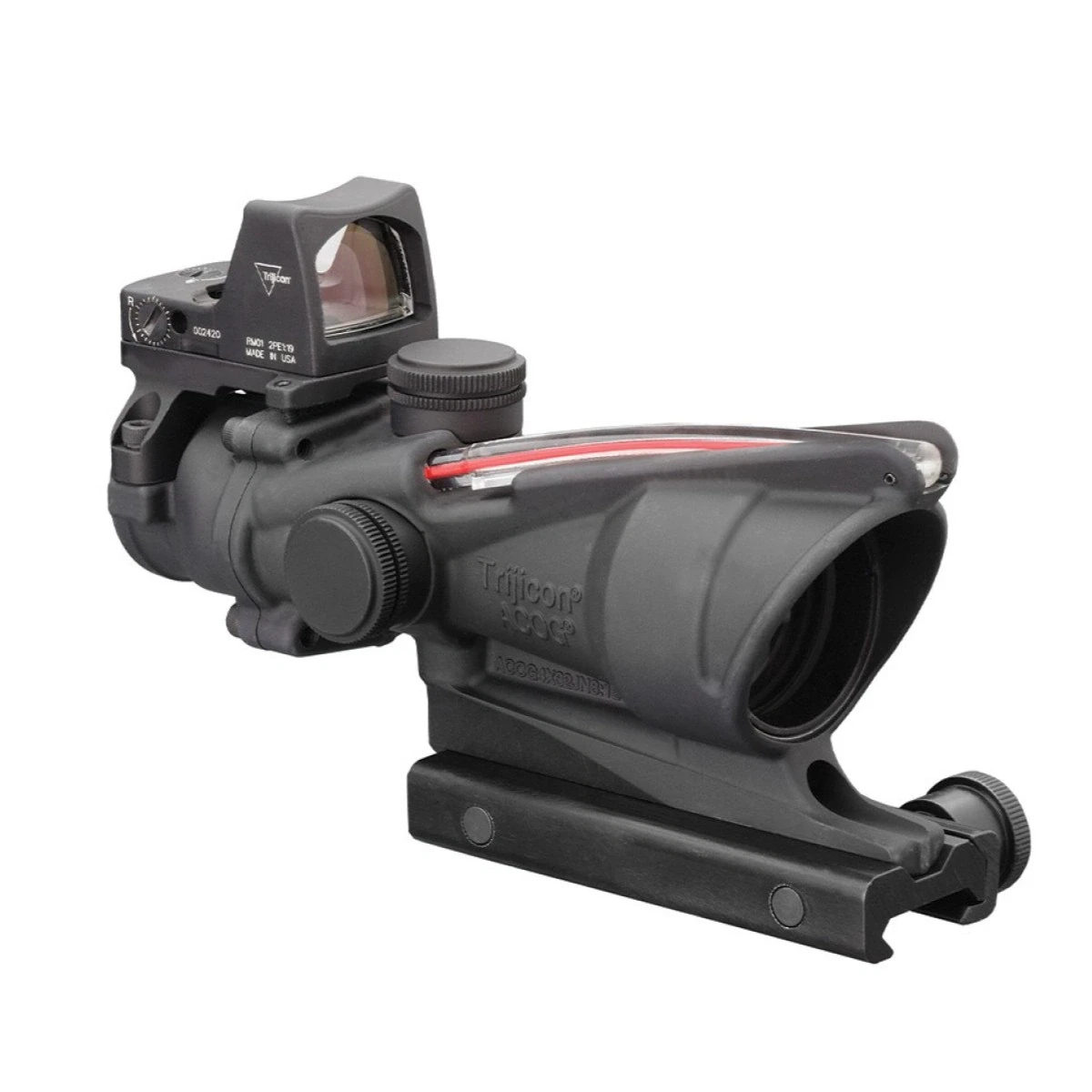 Celownik pryzmatyczny / stałopowiększeniowy ACOG 4×32 z siatką typu „crosshair” (pełny krzyż) balistyczną (.223 / 5.56 mm), z podświetleniem dualnym (światłowód + tryt). Montaż typu TA51 (“flattop mount”). Wersja umożliwiająca celowanie zarówno w dobrym świetle, jak i w warunkach słabego oświetlenia; wysoka trwałość konstrukcji, odporność na wstrząsy, warunki atmosferyczne i wodę.