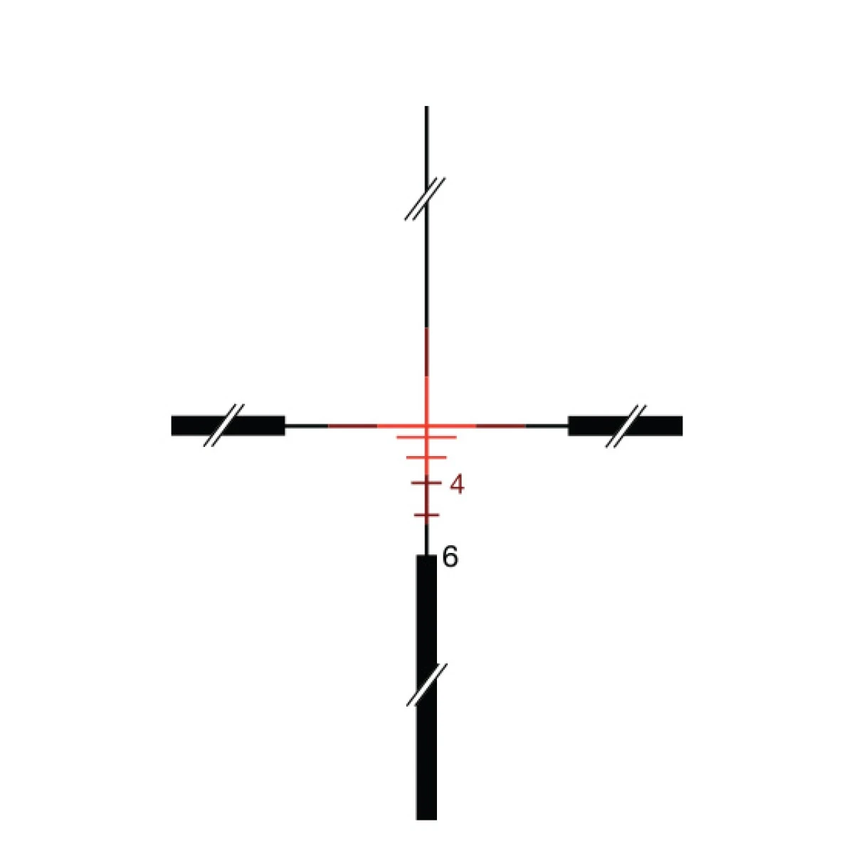 | siatka / punkt | Siatka typu Crosshair balistyczna dla .223 / 5.56 mm, z liniami pomocniczymi (hash marks / bullet drop compensation) – pozwala na szybką ocenę odległości i kompensację opadu pocisku. |