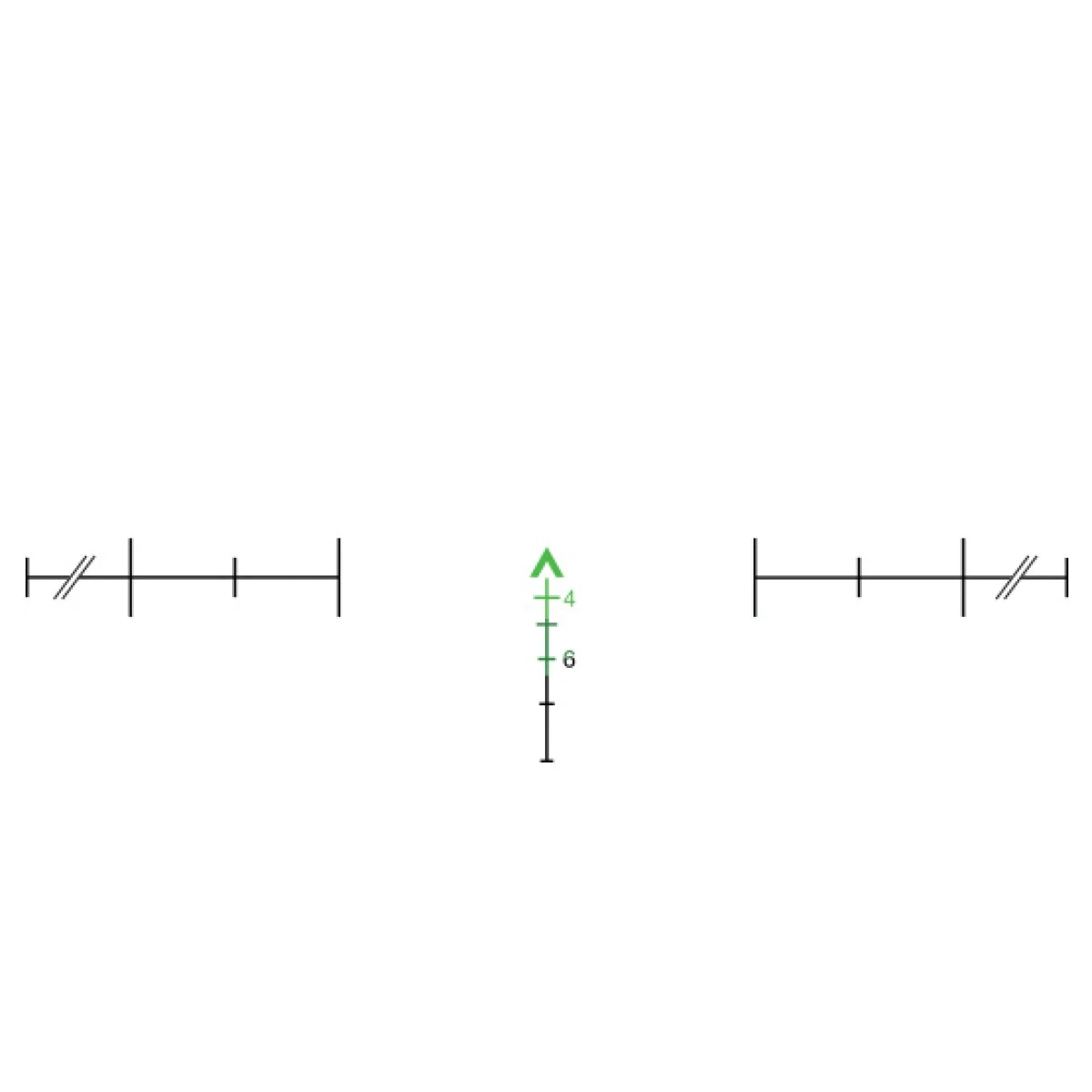 | siatka / punkt | Siatka balistyczna z BDC dla kalibru 5.56/.223. Chevron jako znacznik główny, dodatkowe „hash-marki” (linie pomocnicze) dla odległości i poprawek bocznych. |